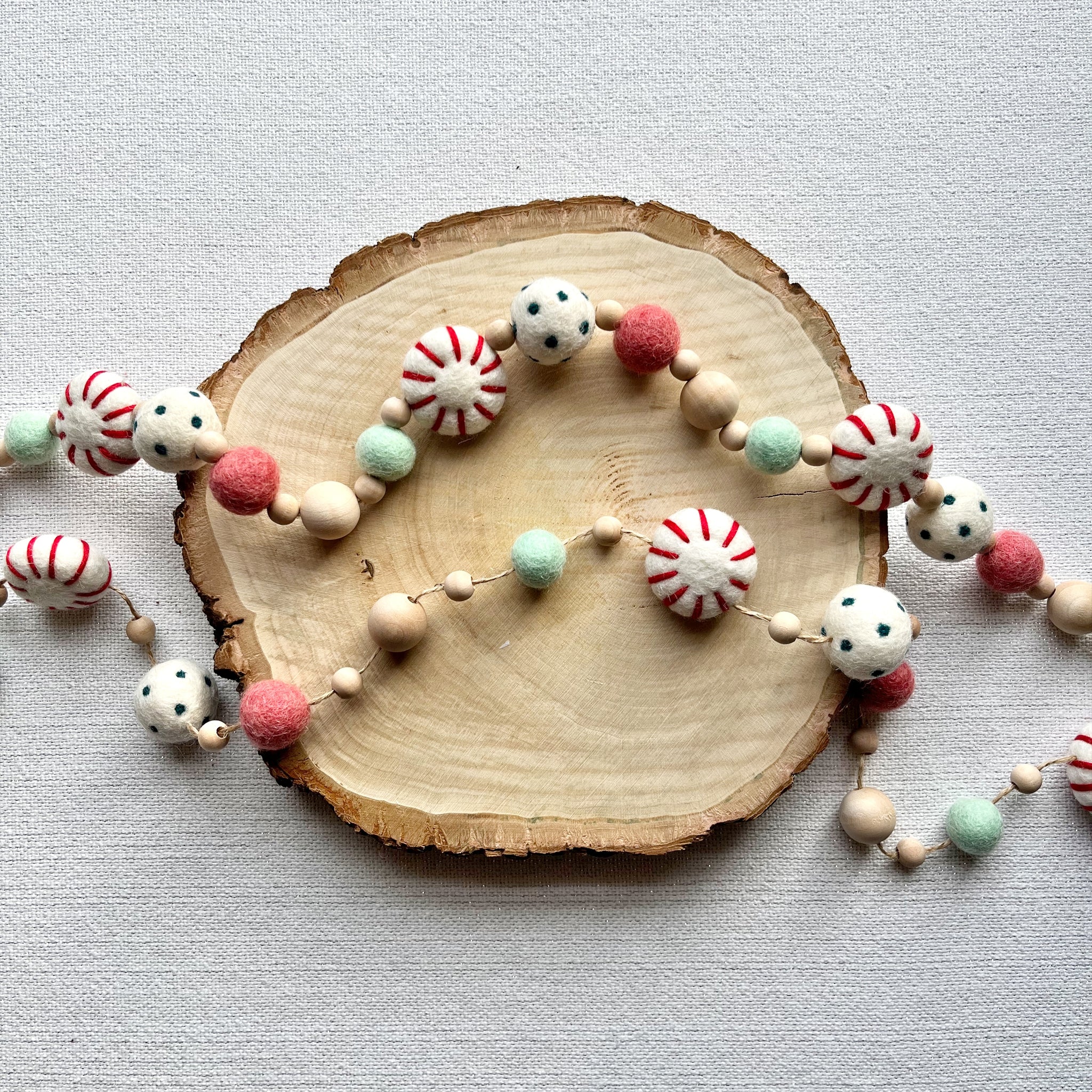 Felt balls and wood beads could vary slightly in color and size depending on availability, but will always remain true to the overall color scheme and style pictured.